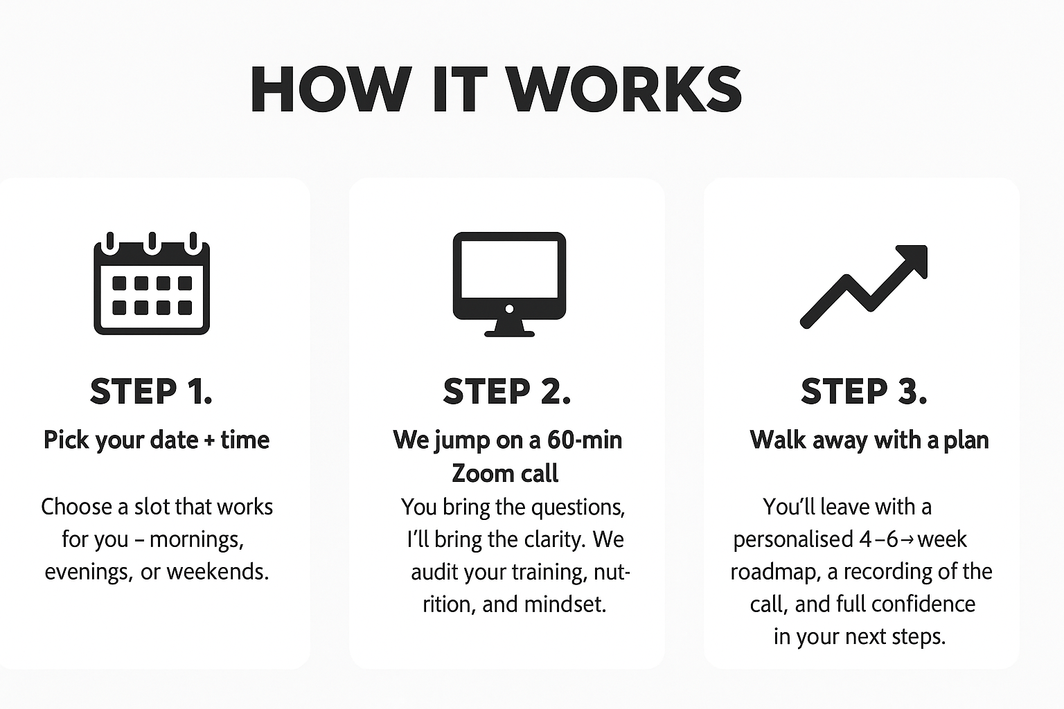 Whether your FTP is stuck, the scale won’t budge, or your motivation’s fading — this call is designed to get you unstuck fast, with a personalised plan that actually works.