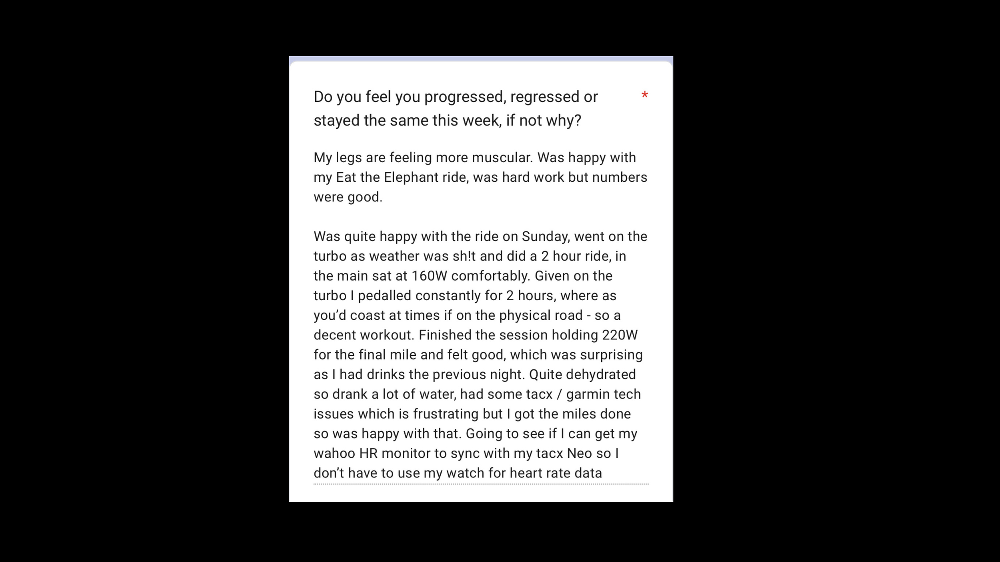 By focusing on quality over quantity, Jon was able to stay consistent, recover well, and build fitness steadily without it taking over his life. That’s exactly how progress should feel.