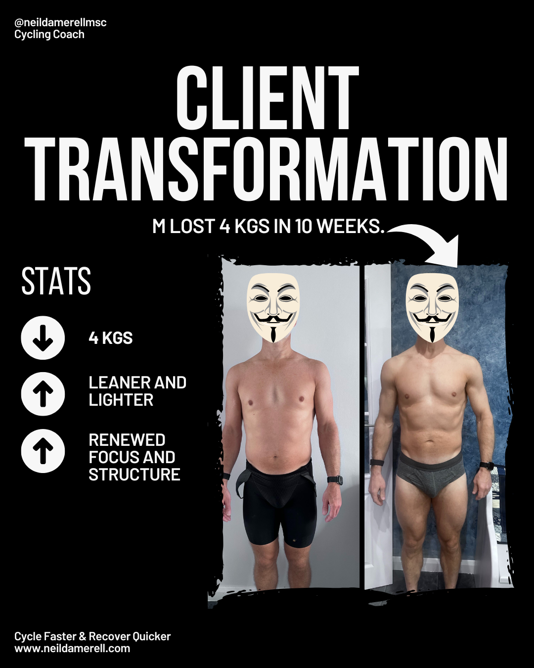 Mark didn’t just get fitter. He became more confident, more consistent, and started enjoying cycling again without that constant fear of being dropped.