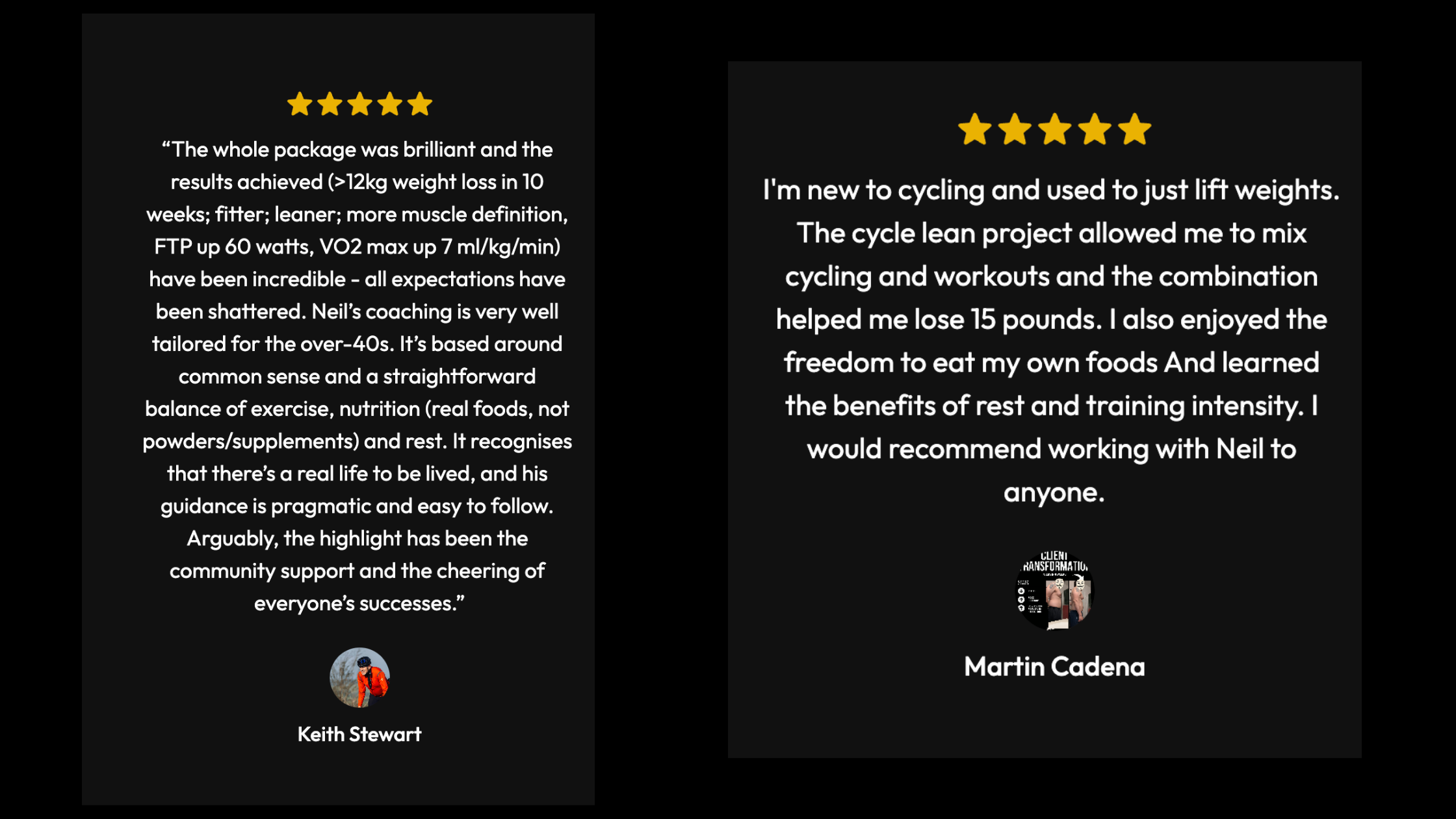 Keith joined The Cycle Lean Project in 2025 and dropped 12 kg while gaining 60 watts by following a structured mix of endurance, tempo, and a weekly strength session.